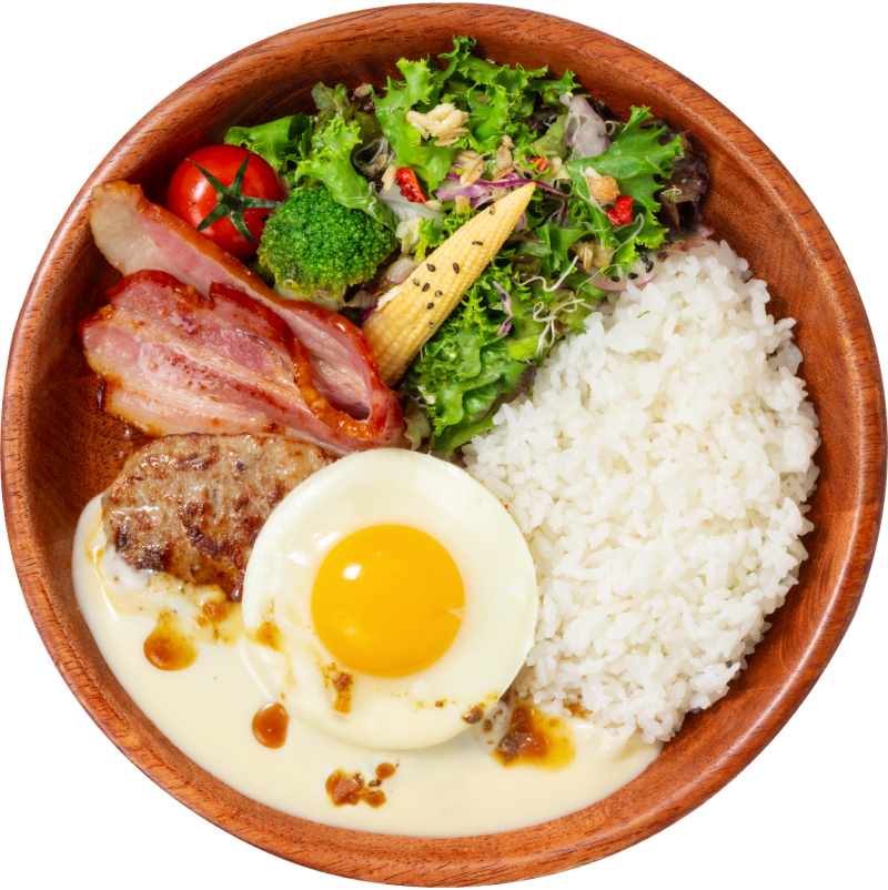 クリーミーなフォンデュソースに厚切りベーコンとたまご。