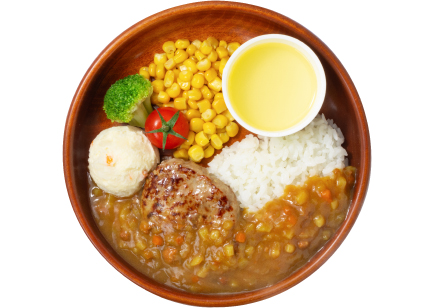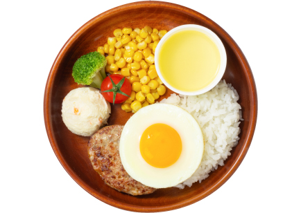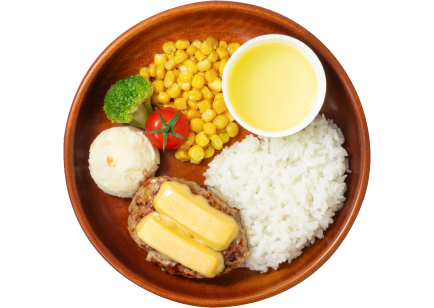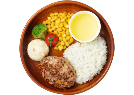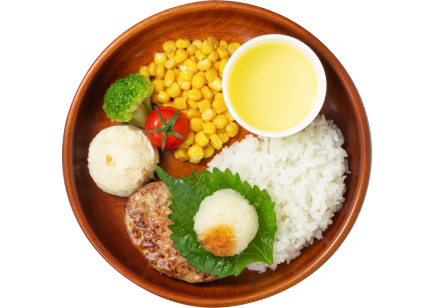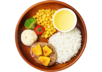 おかずはポテトサラダ、スイートコーン、ブロッコリーとミニトマト、